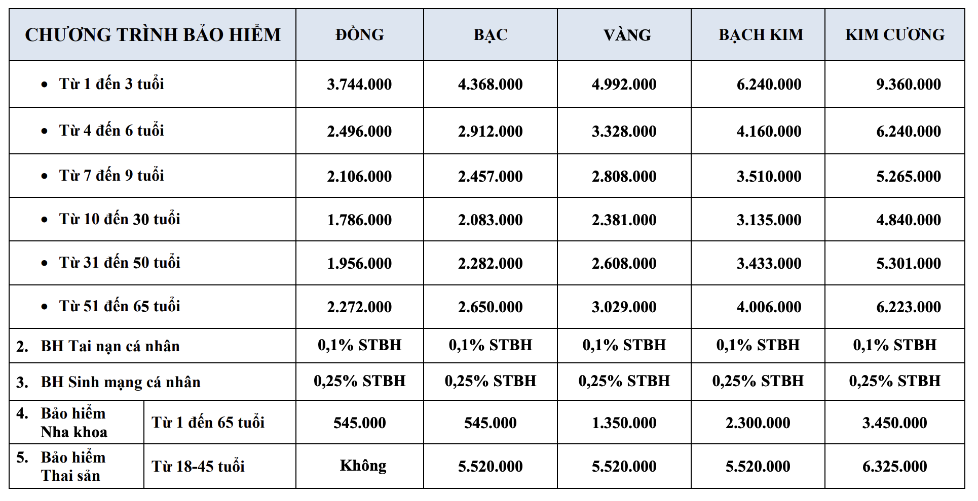 Phí bảo hiểm từ: 1.196.000đ/Năm